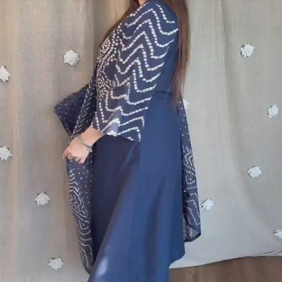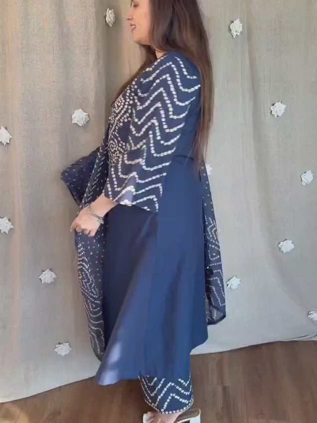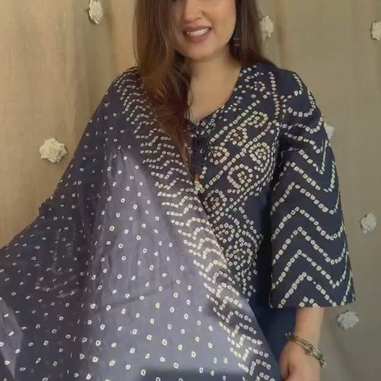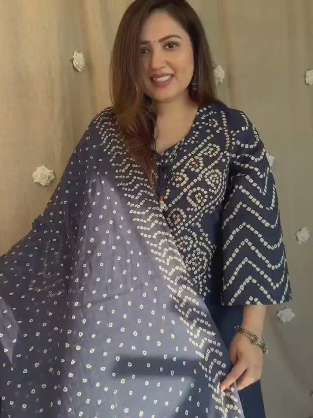 Navy Blue Bandhani Printed Kurta Set with Dupatta